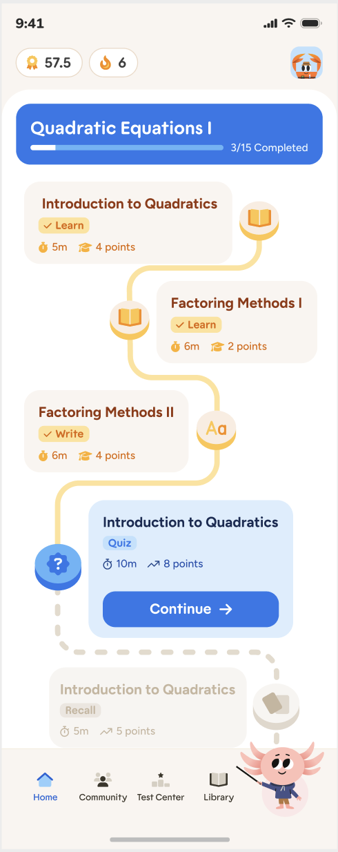 Admitere Educato primește un design playful, inspirat de platforme de învățare moderne ca Duolingo. Interfața devine mai ușor de folosit, colorată și interactivă, ca un joc care te motivează să mai faci “încă o lecție”.